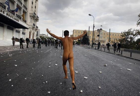 18. Ο γυμνός διαδηλωτής του Συντάγματος (Οκτώβριος 2012. REUTERS/John Kolesidis)