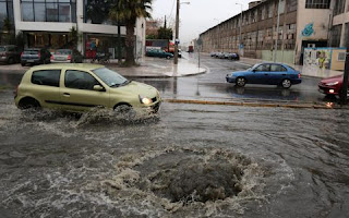 Σε μια πόλη που όπου και άν κοιτάξεις βλέπεις τσιμέντο, γεμάτη αυθερεσίες είναι αναμενόμενο να δημιουργούνται τέτοια προβλήματα με μικρής έκτασης καταιγίδες...