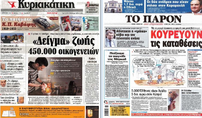 Κυριακάτικα πρωτοσέλιδα 7-4-2013