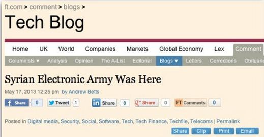 Τον έλεγχο της ιστοσελίδας και του λογαριασμού του Twitter των Financial Times κατάφεραν να έχουν Σύριοι Hackers που υποστηρίζουν την Συριακή κυβέρνηση.
