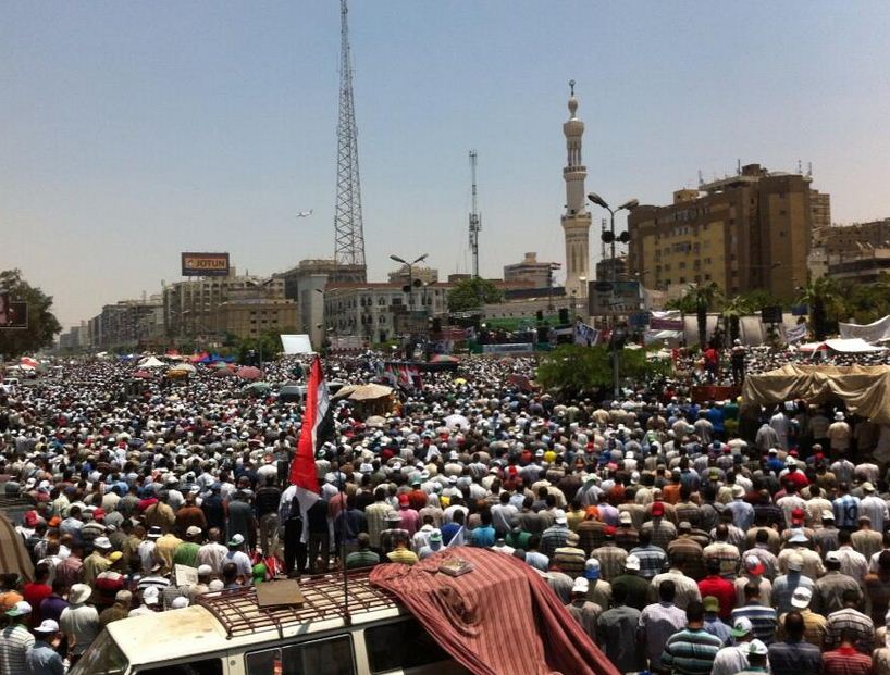 Στην πλατεία Ταχρίρ του Καΐρου συγκεντρώνονται από το πρωί της Κυριακής αιγύπτιοι διαδηλωτές, όπου εκατοντάδες άλλοι πέρασαν τη νύχτα, μερικές ώρες πριν από τη μαζική συγκέντρωση της αντιπολίτευσης, η οποία θα ζητήσει την παραίτηση του ισλαμιστή προέδρου της Αιγύπτου, Μοχάμεντ Μόρσι.