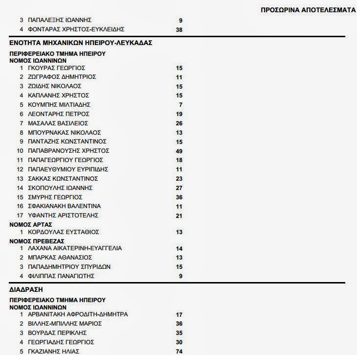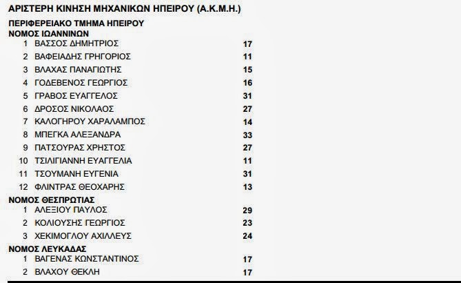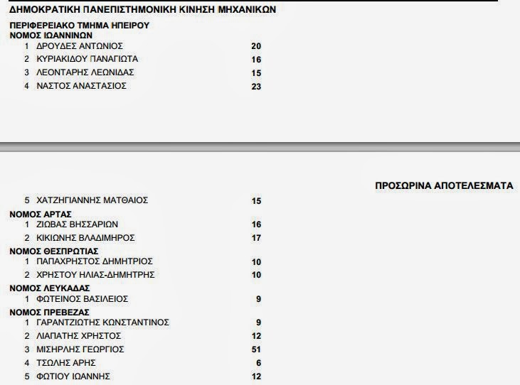 Τα αποτελέσματα για την αντιπροσωπεία του ΤΕΕ Ηπείρου