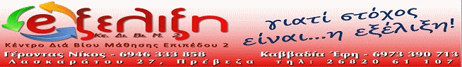 Πληροφορίες: ΕΞΕΛΙΞΗ - ΛΑΣΚΑΡΑΤΟΥ 27, ΠΡΕΒΕΖΑ, 2682061107