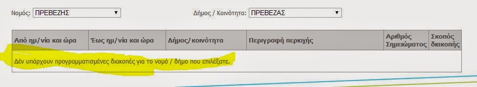 Καμιά πογραμματισμένη διακοπή του ηλεκτρικού ρεύματος δεν έχουμε στην Πρέβεζα μέχρι στιγμής σύμφωνα με την ΔΕΔΔΗΕ.