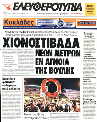 Ελευθεροτυπία: "Χιονοστιβάδα Νέων μέτρων εν αγνοία της Βουλής"