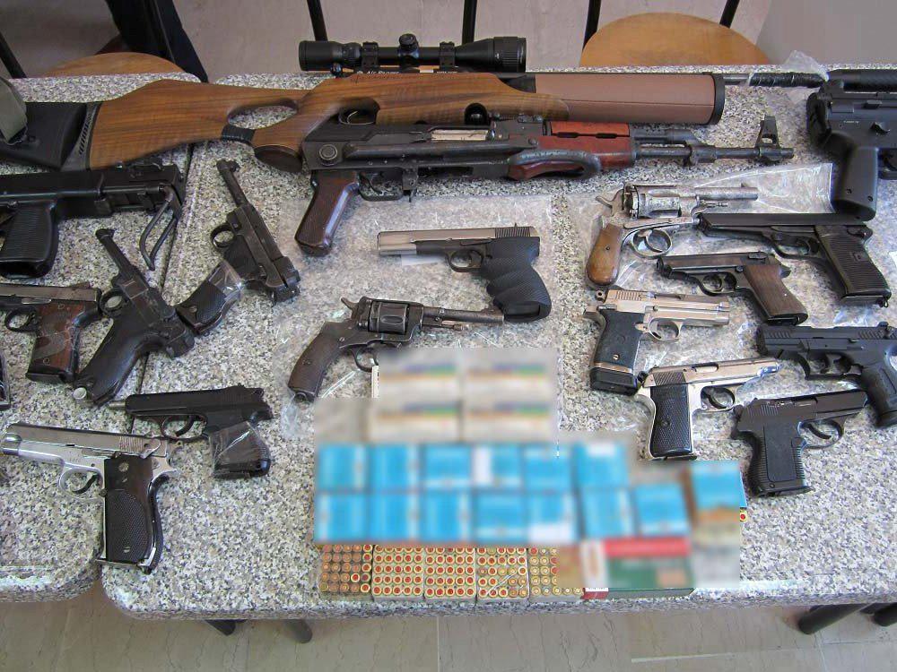 Οι αστυνομικοί συνέλαβαν 11 άτομα σε περιοχές της Αττικής, της Αχαΐας, της Ηλείας και της Κορίνθου, ενώ βρήκαν περισσότερα από 80 πιστόλια, περίστροφα, πολεμικά τυφέκια και πυροκροτητές.