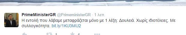 Το tweet Tσίπρα για την νέα κυβέρνηση που έβγαλε την αναμνηστική της φωτογραφία στο προαύλιο του κοινοβουλίου.