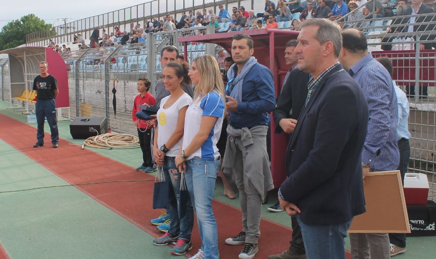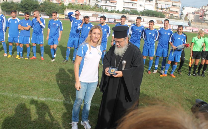 Πριν το φιλικό τιμήθηκαν οι δυο χρυσές πρεβεζάνες ολυμπιονίκες Κατερίνα Θάνου και Αθανασία Τζουμελέκα.
