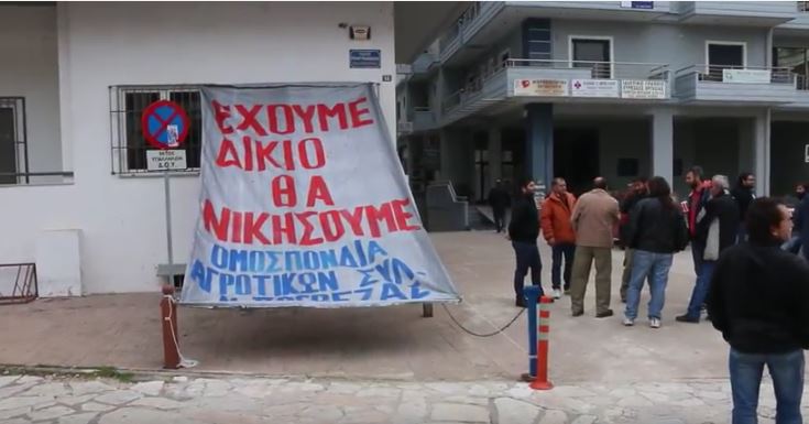Σε πανο που αναρτήθηκε στο κτηριο της εφορίας ισχυρίζονται πως τα αιτήματα τους είναι δίκαια και συνεχίζουν τον αγώνα μέχρι να νικήσουν