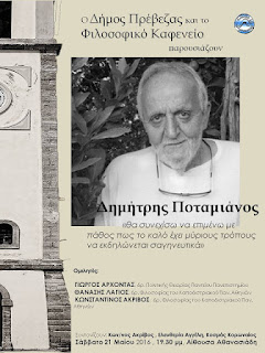 Ο Δήμος Πρέβεζας και το Φιλοσοφικό Καφενείο τιμούν το Δημήτρη Ποταμιάνο, μια σπουδαία πνευματική προσωπικότητα και ένα ξεχωριστό μέλος της Οικογένειας Ποταμιάνου που συνδέθηκε με την Πρέβεζα.