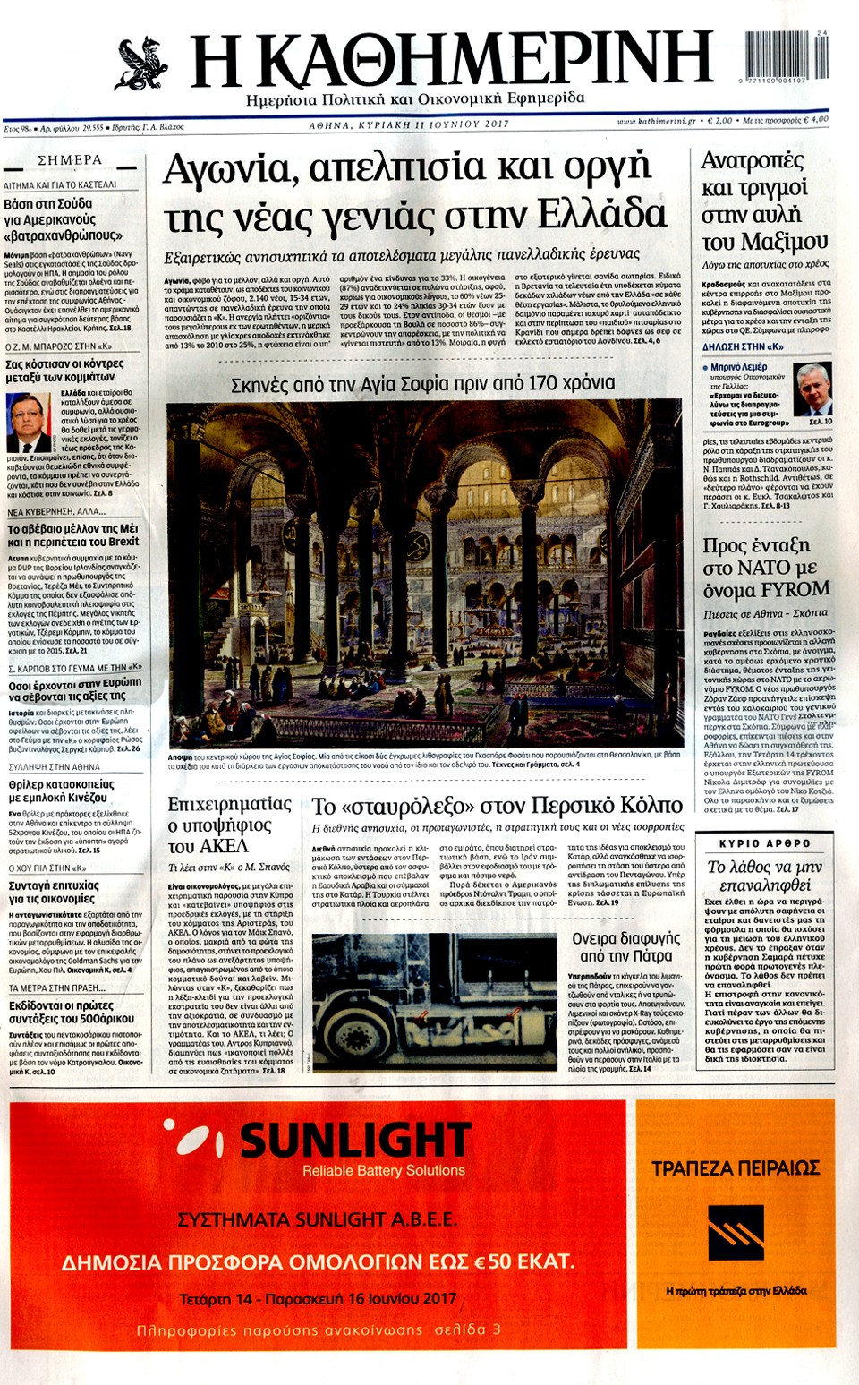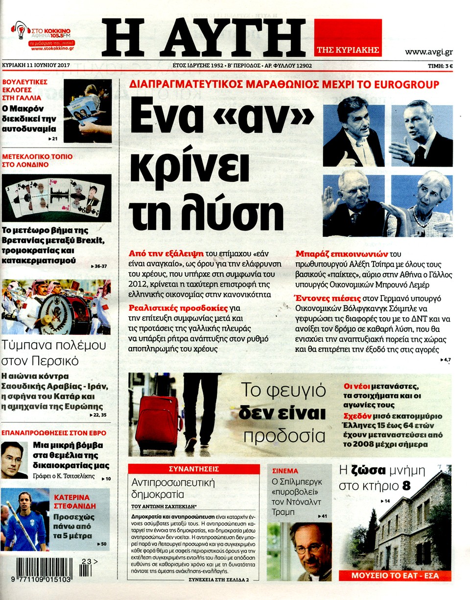 Τα πρωτοσέλιδα της Κυριακής 11-6-2017