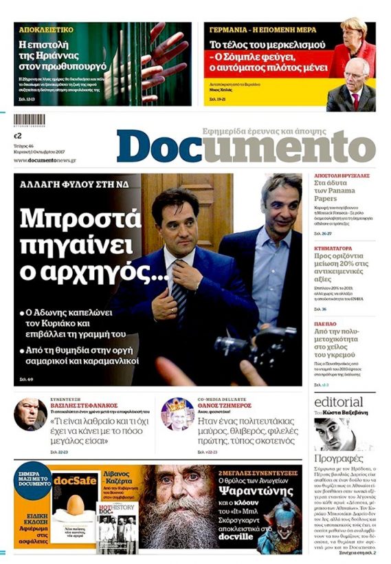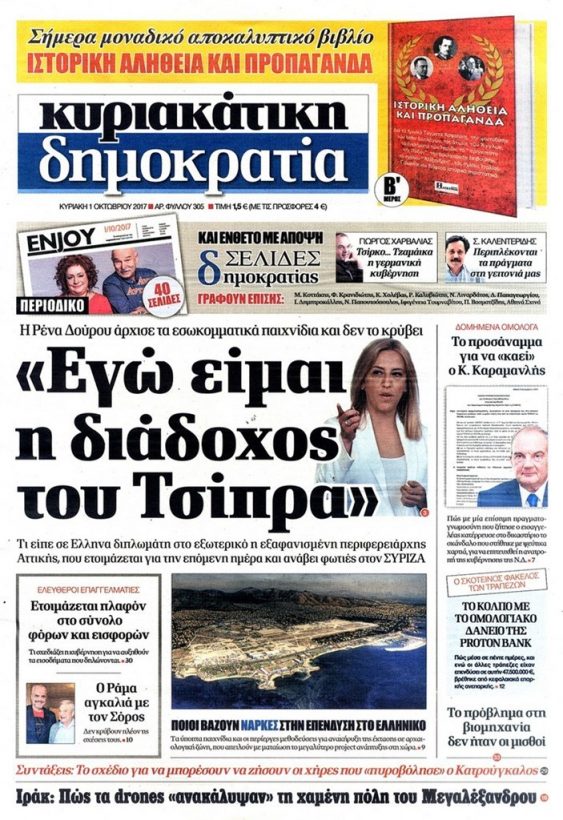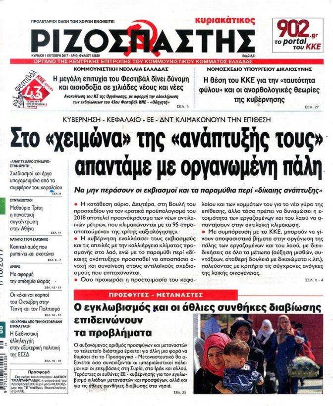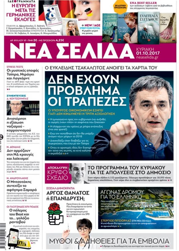 Τα πρωτοσέλιδα της Κυριακής 1-10-2017