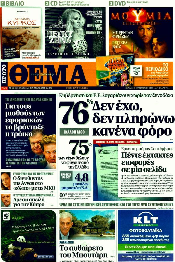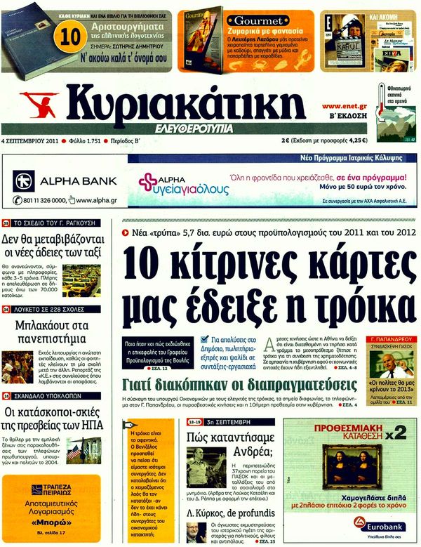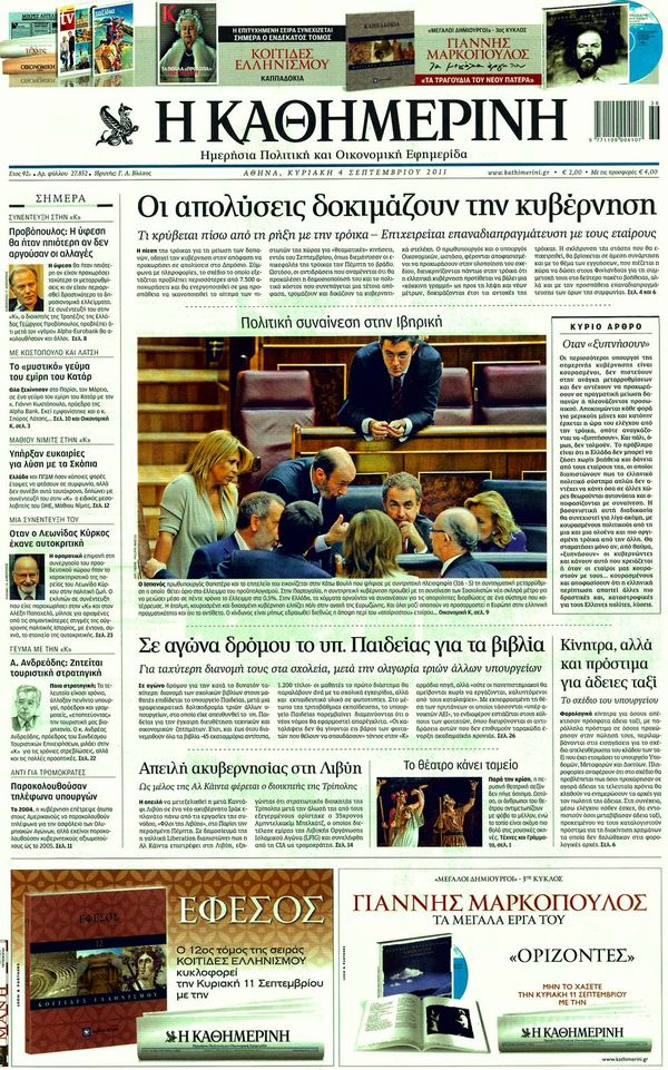 Κυριακάτικα Πρωτοσέλιδα.... 4/9/2011