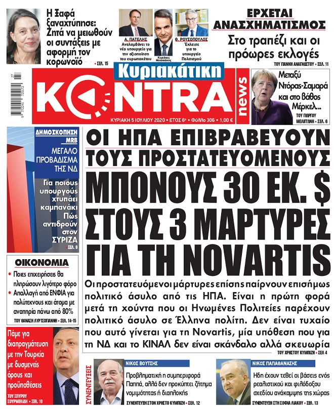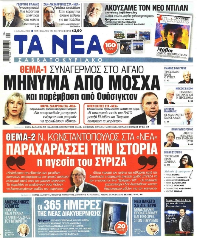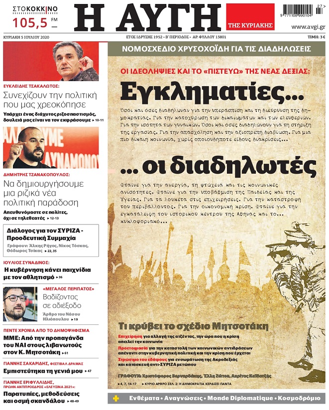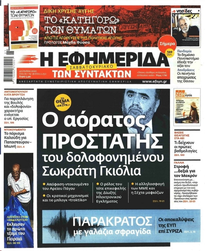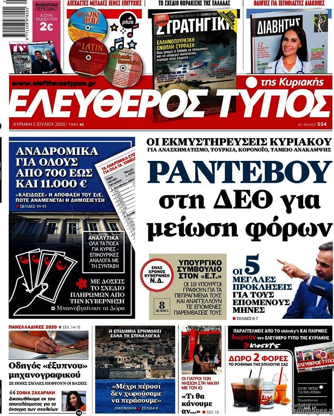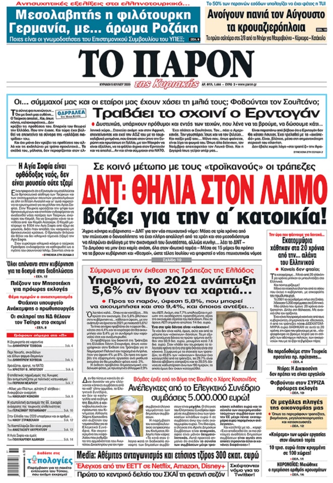 Τα πρωτοσέλιδα της Κυριακής 5-7-2020