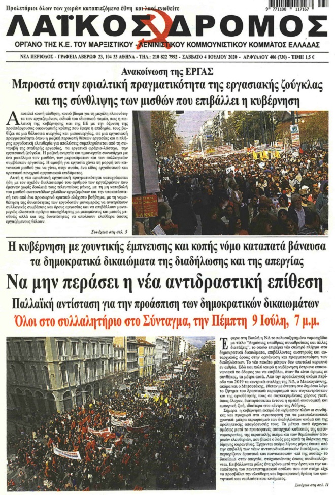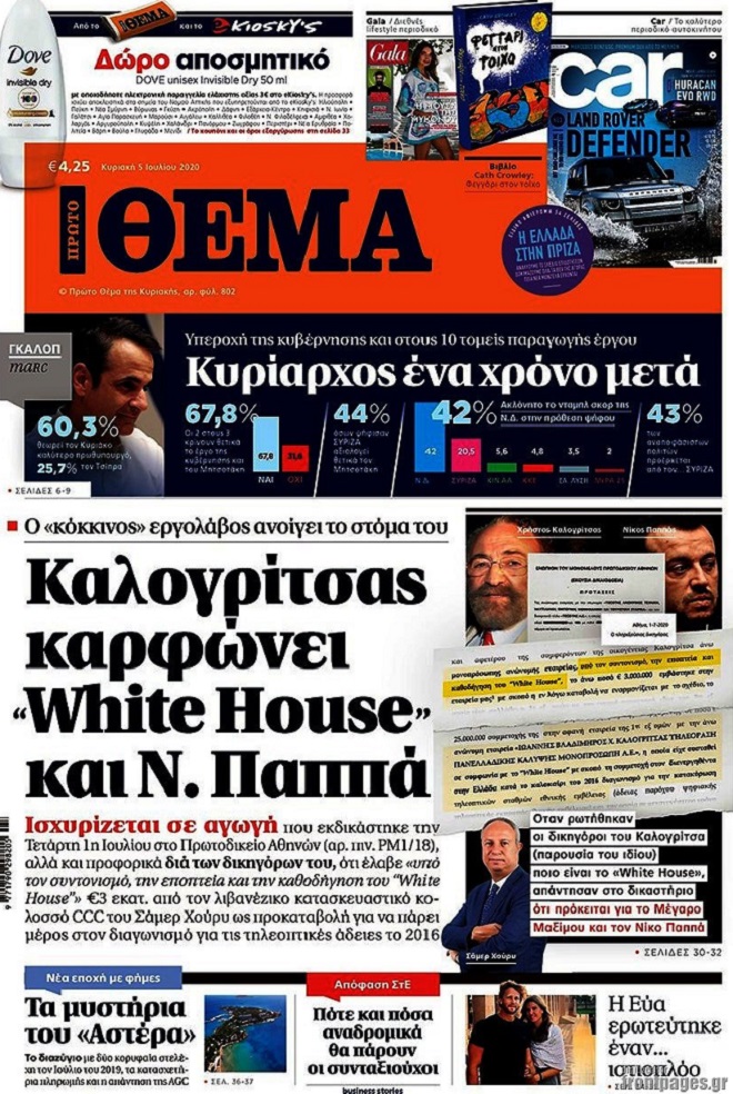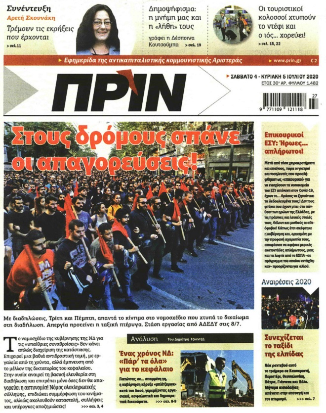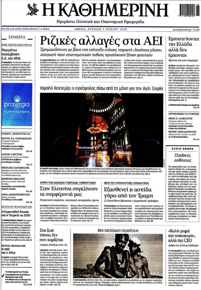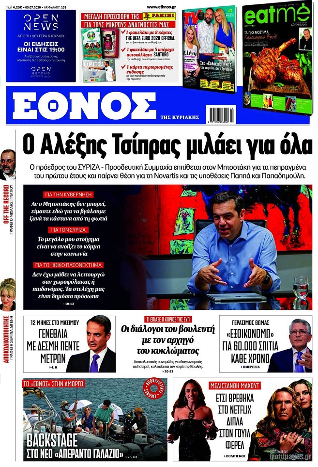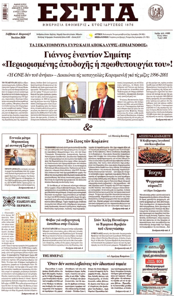 Τα πρωτοσέλιδα της Κυριακής 5-7-2020