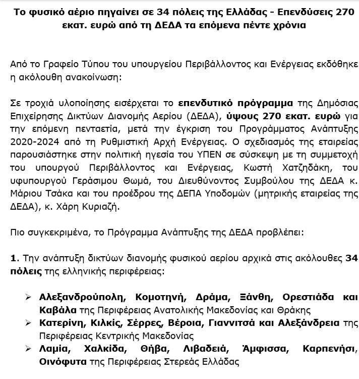 Το φυσικό αέριο '' ερχεται '' στην Πρέβεζα και σε άλλες 34 πόλεις