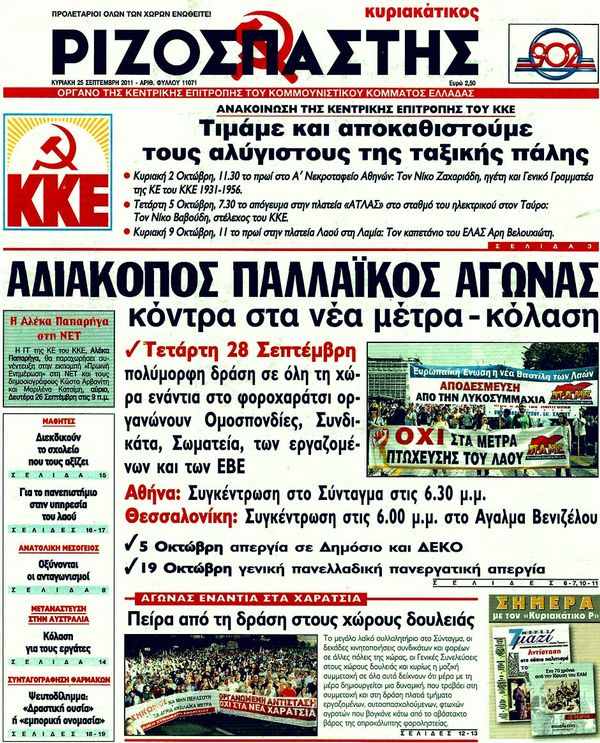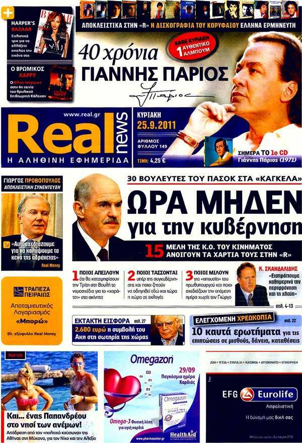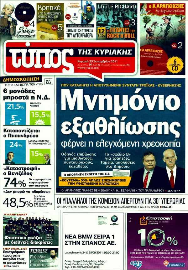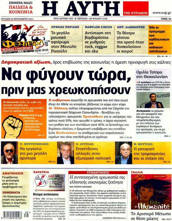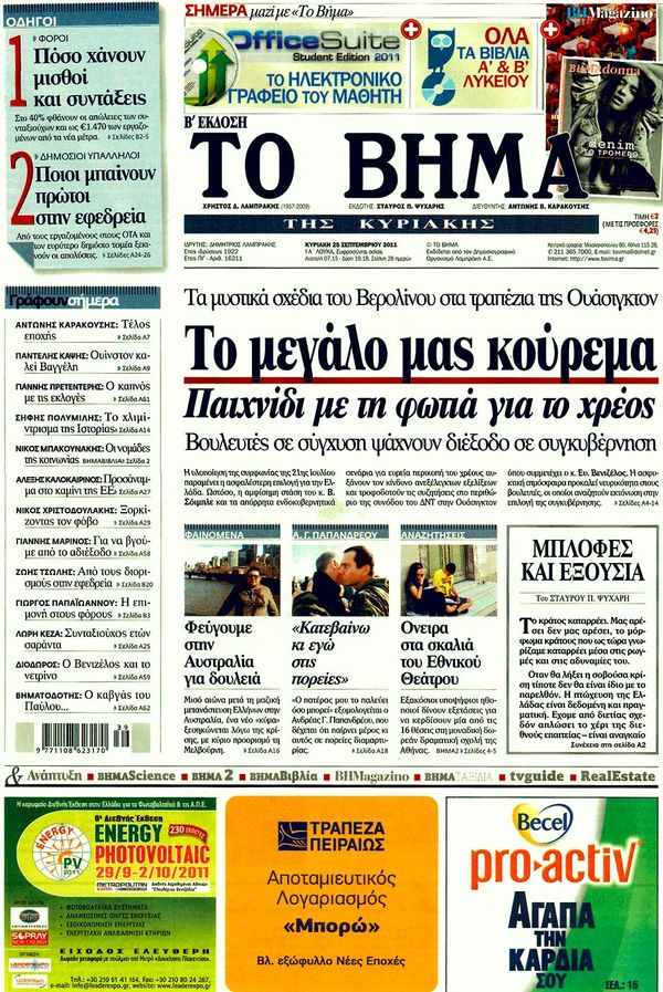 Κυριακάτικα Πρωτοσέλιδα...25/9/2011