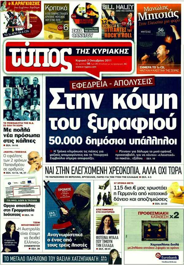 Κυριακάτικα Πρωτοσέλιδα...2/10/2011