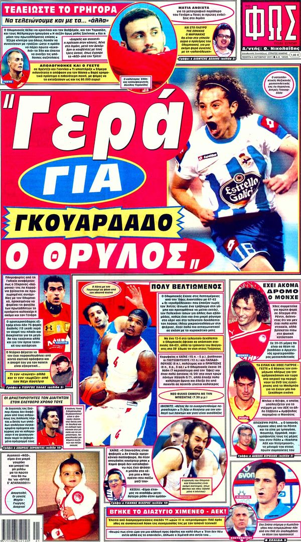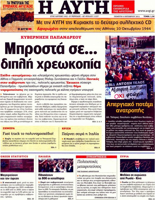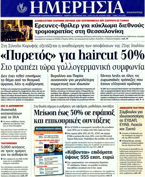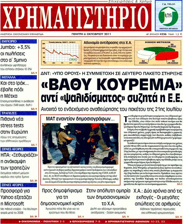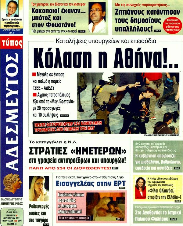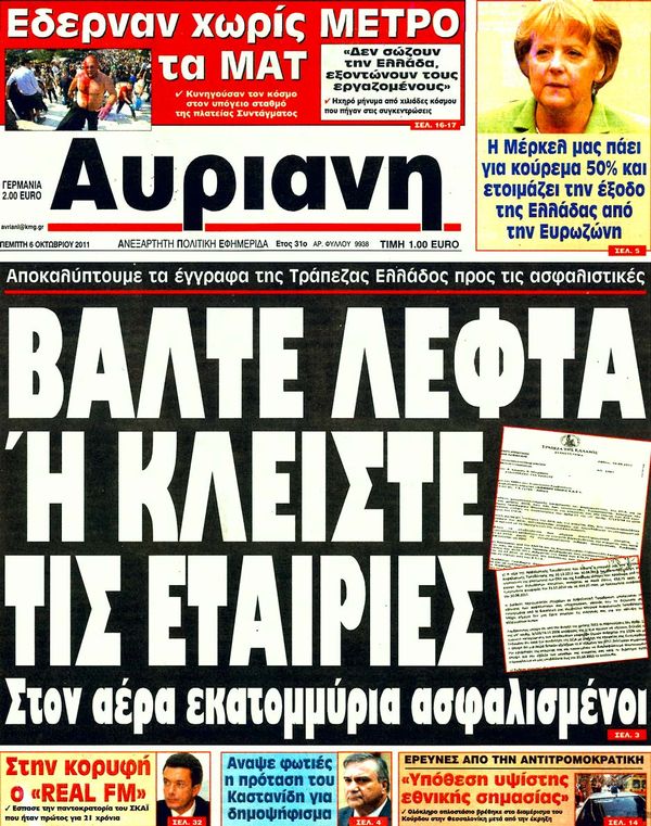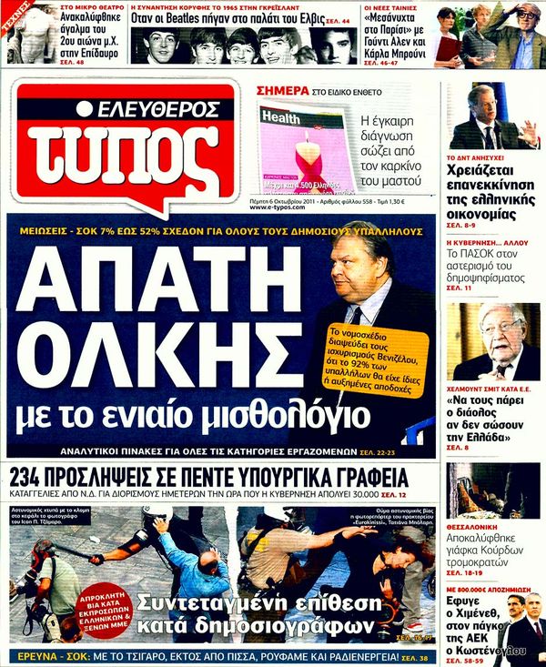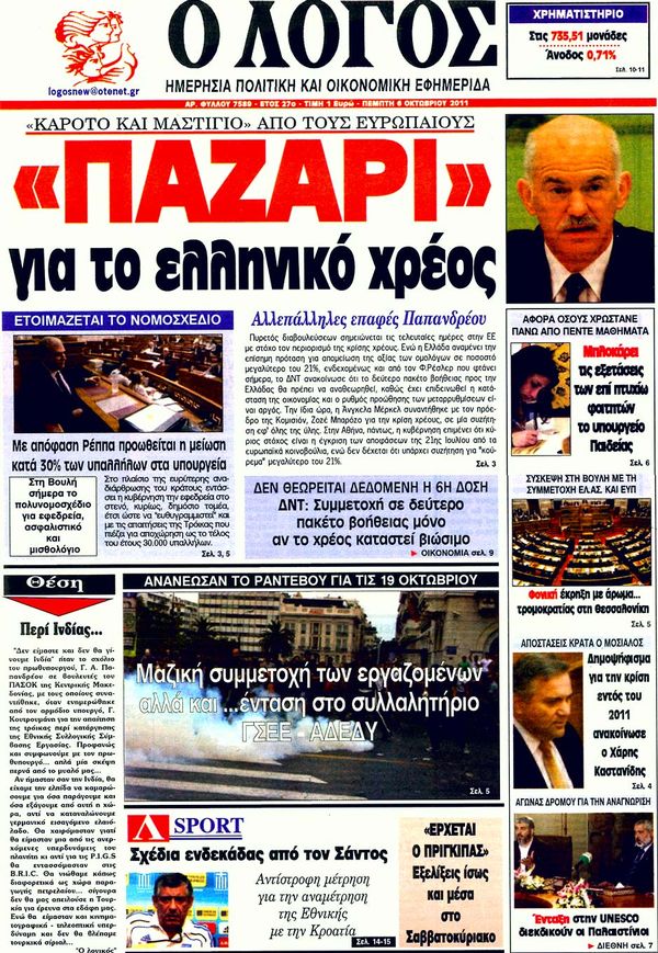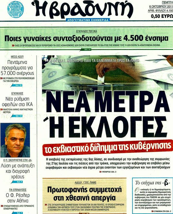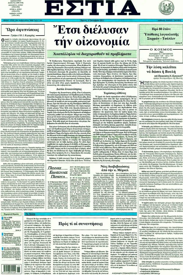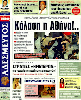 Ολα τα πρωτοσέλιδα , Πολιτικών , Οικονομικών, Αθλητικών εφημερίδων