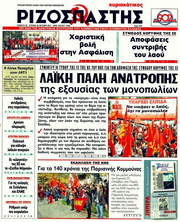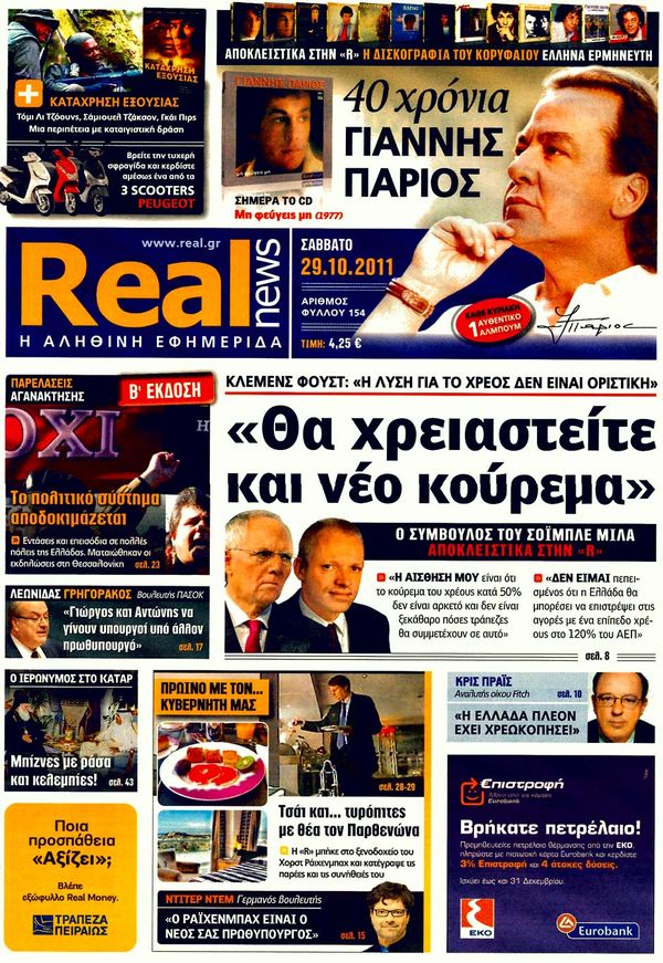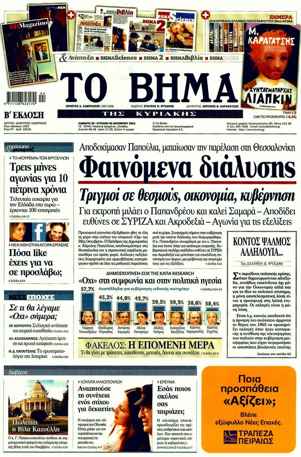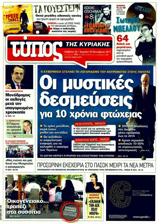 Κυριακάτικα Πρωτοσέλιδα 30/10/2011
