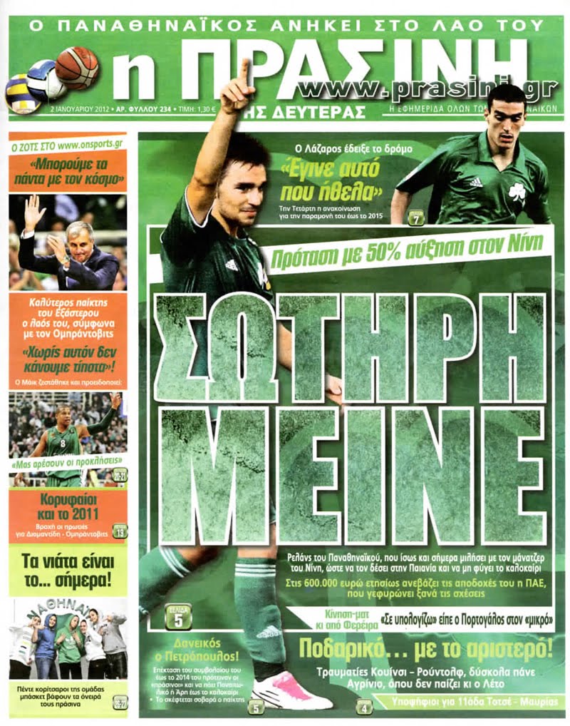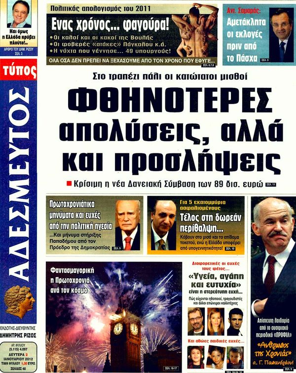 Πολιτικές και αθλητικές εφημερίδες 2-1-2012