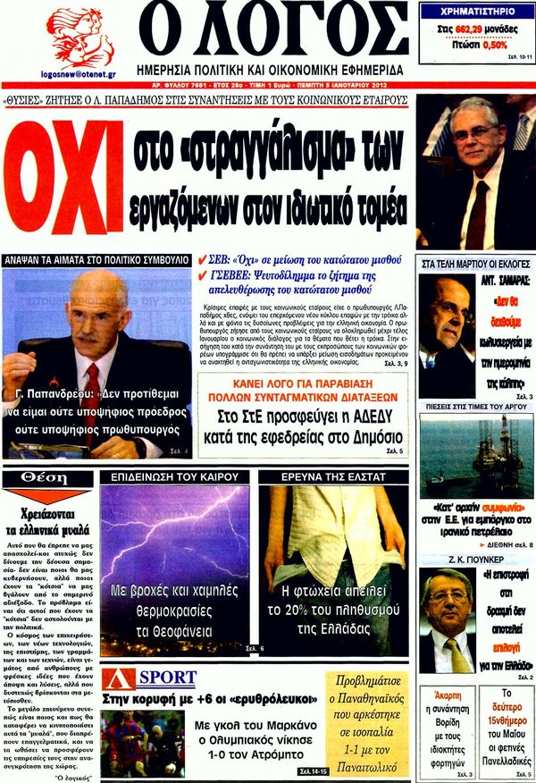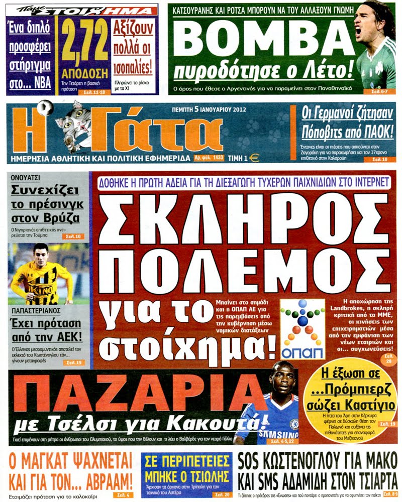 Πολιτιές & Αθλητικές εφημερίδες 5-1-2011