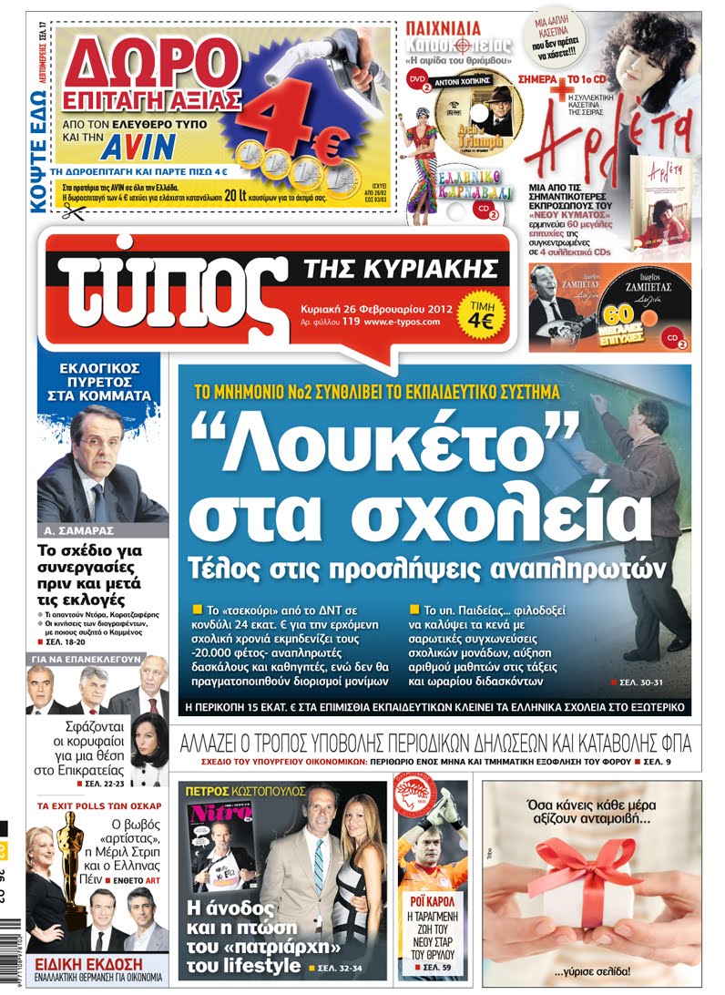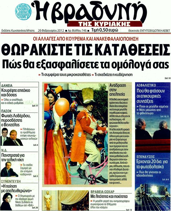 Κυριακάτικα Πρωτοσέλιδα 26-2-2012