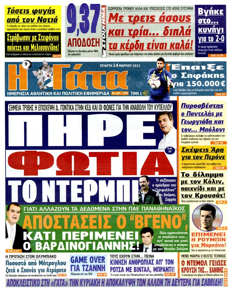 Πολιτικές & Αθλητικές εφημερίδες 14-3-2011