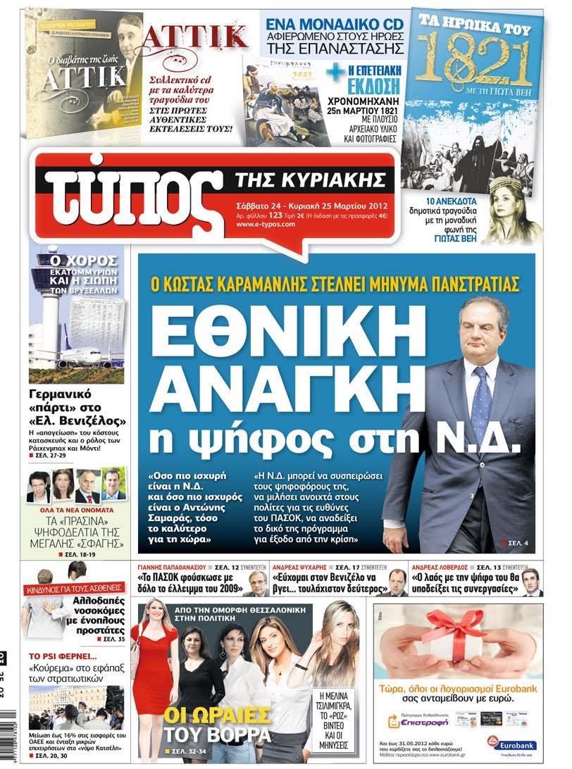 Κυριακάτικα Πρωτοσέλιδα 25 -3-2012