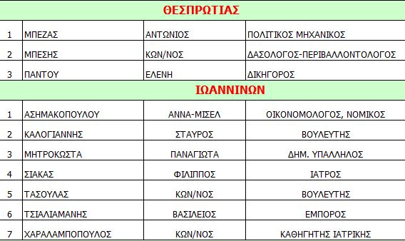 Οι υποψήφιοι της Νέας Δημοκρατίας στην Ήπειρο
