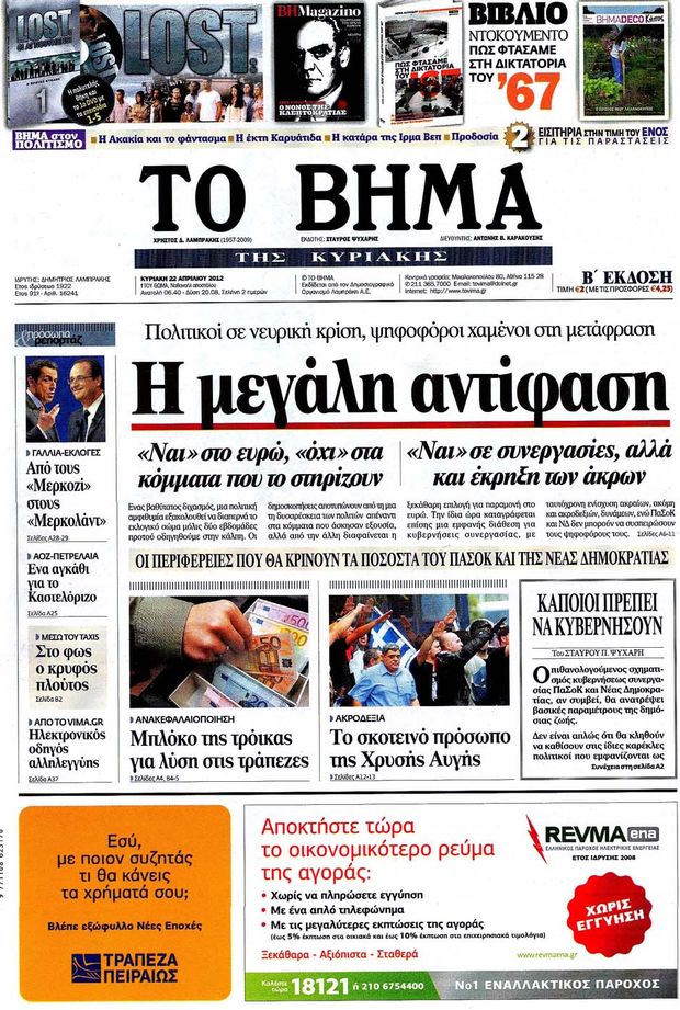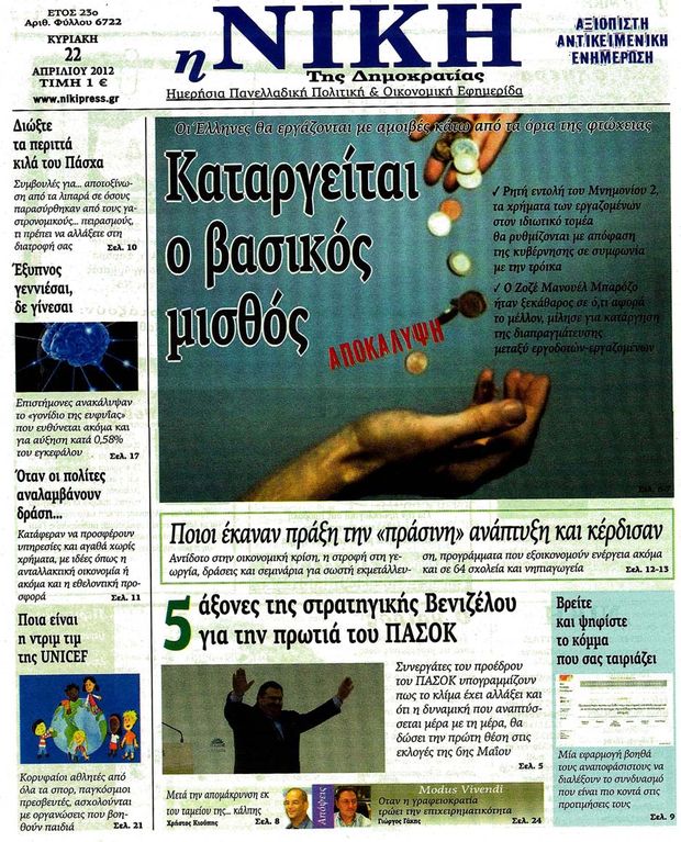 Κυριακάτικα Πρωτοσέλιδα 22-4-2012