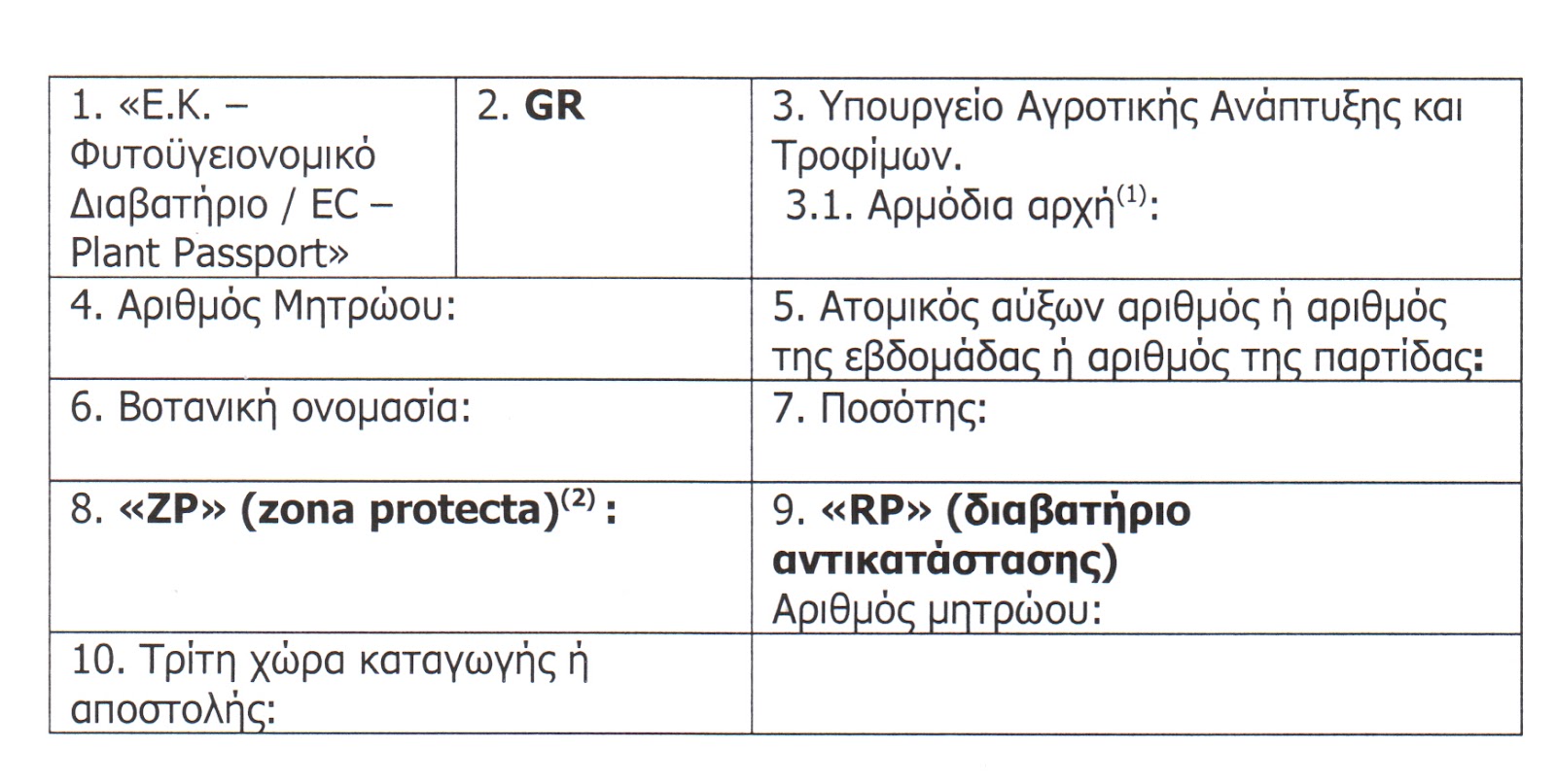 (1) Αναγράφεται η αρμόδια αρχή που εγκρίνει την έκδοσή του: Δ/νση Αγροτ. Οικονομίας και Κτηνιατρικής ή Περιφερειακό Κέντρο Προστασίας Φυτών και Ποιοτικού Ελέγχου (ΠΚΠΦ & ΠΕ).