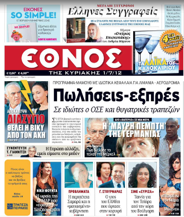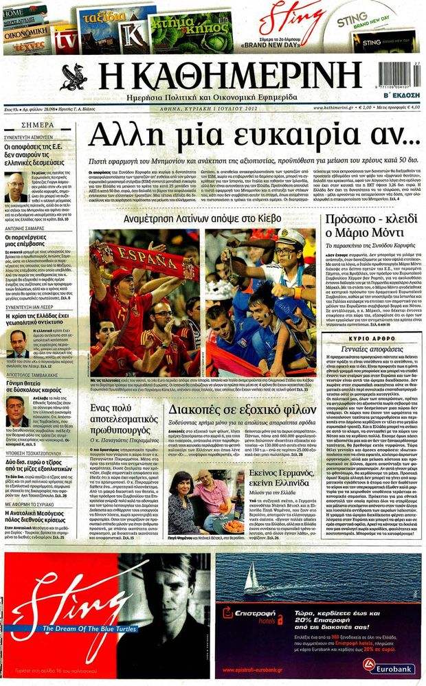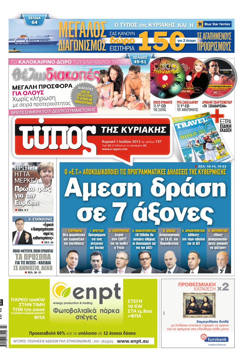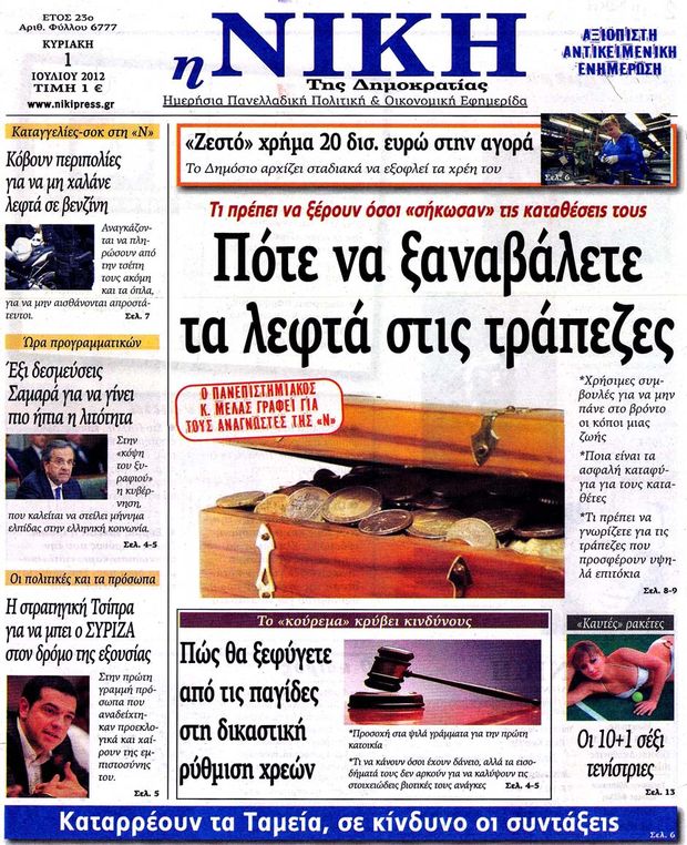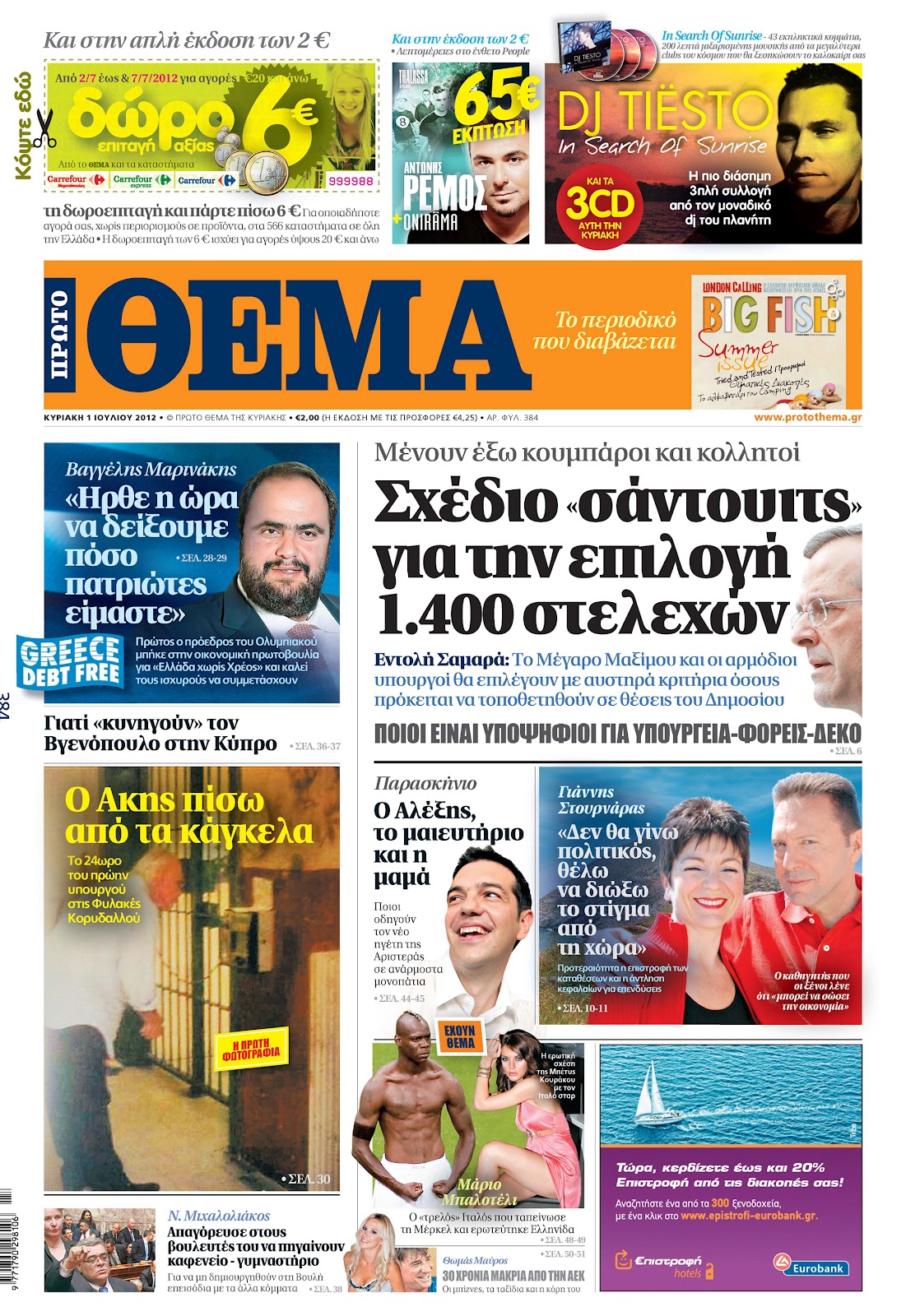 Κυριακάτικα Πρωτοσέλιδα 1-7-2012