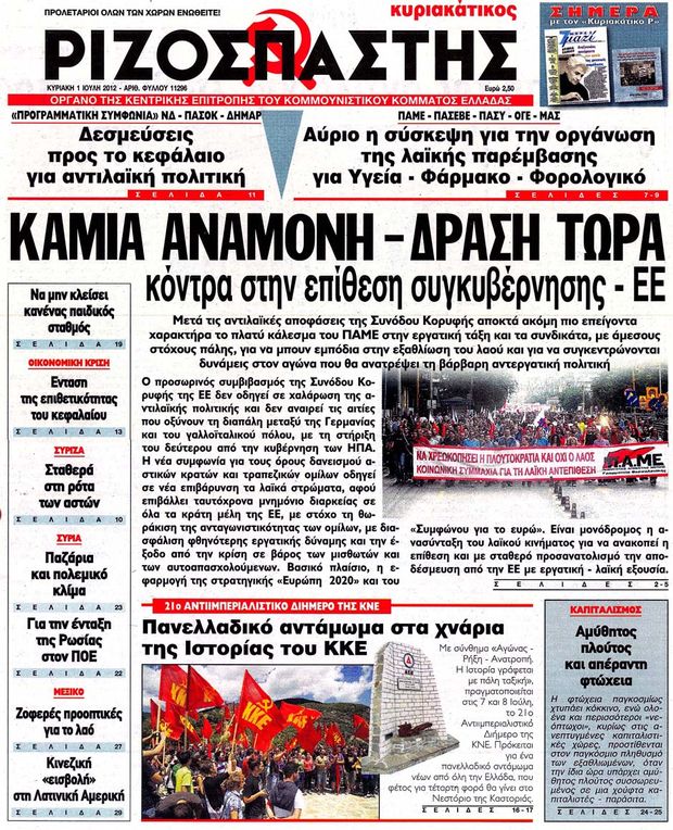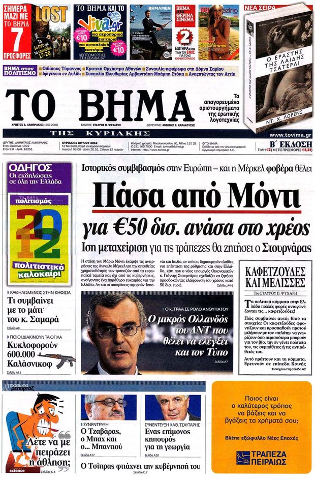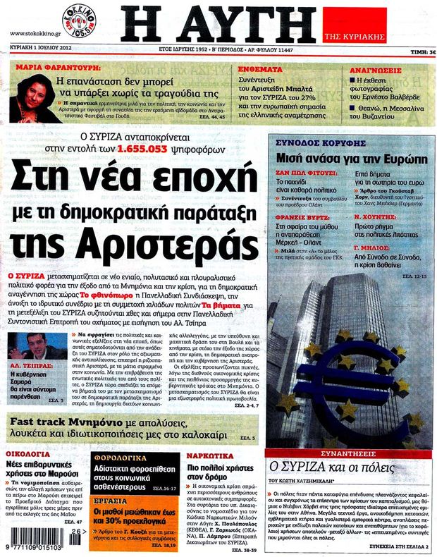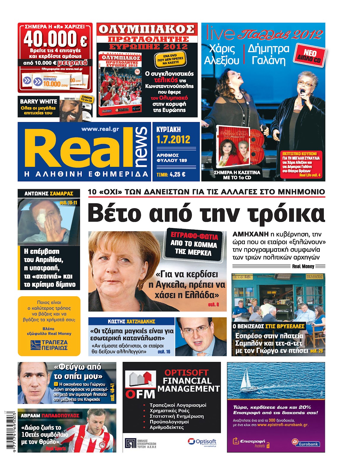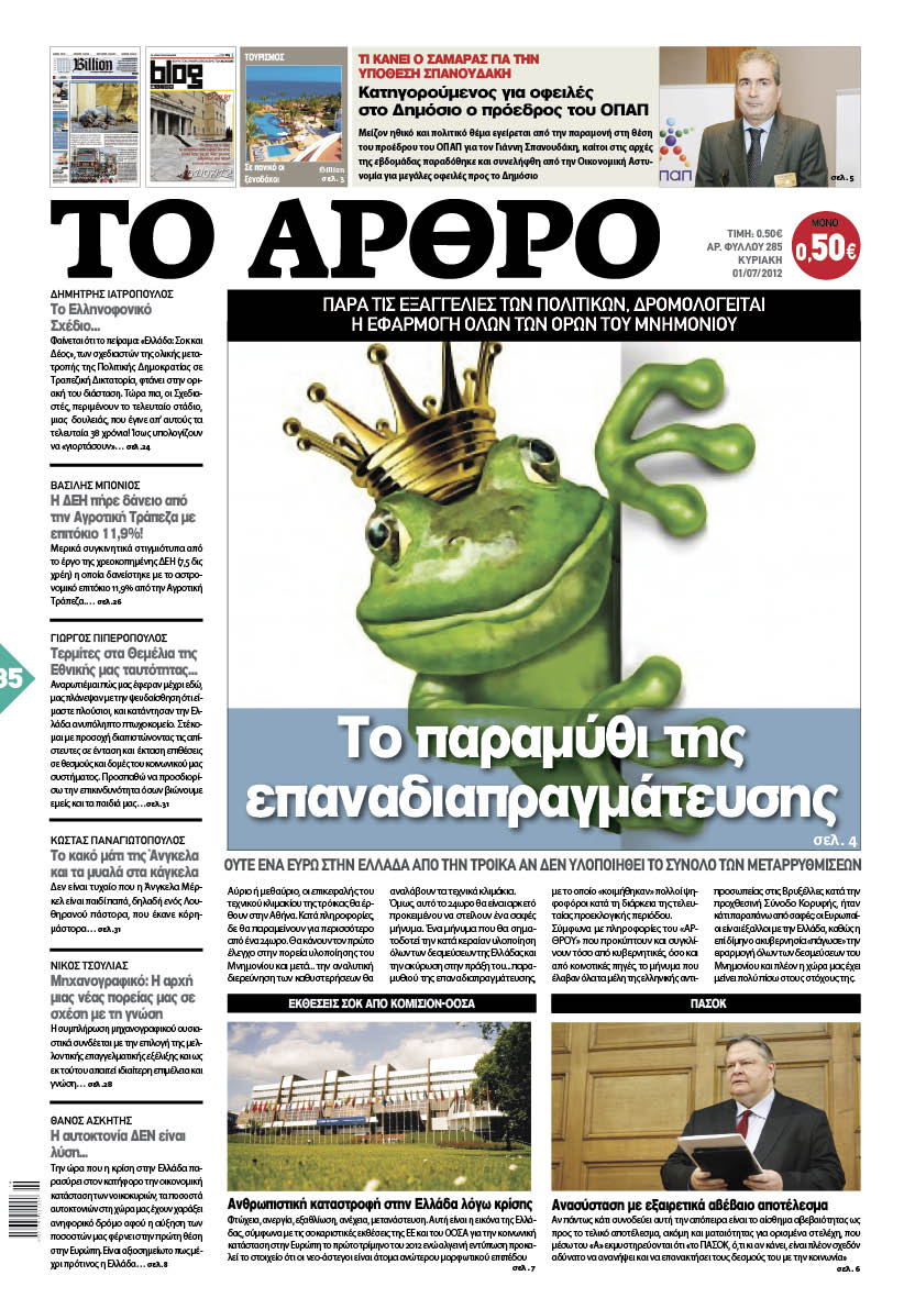 Κυριακάτικα Πρωτοσέλιδα 1-7-2012