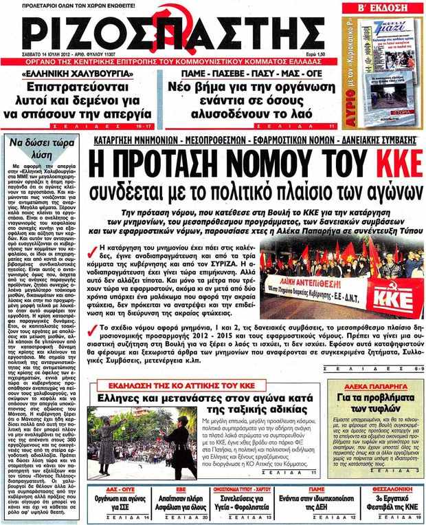 Πολιτικές εφημερίδες 14-7-2012