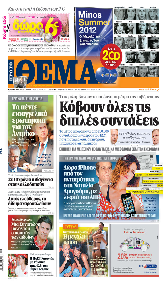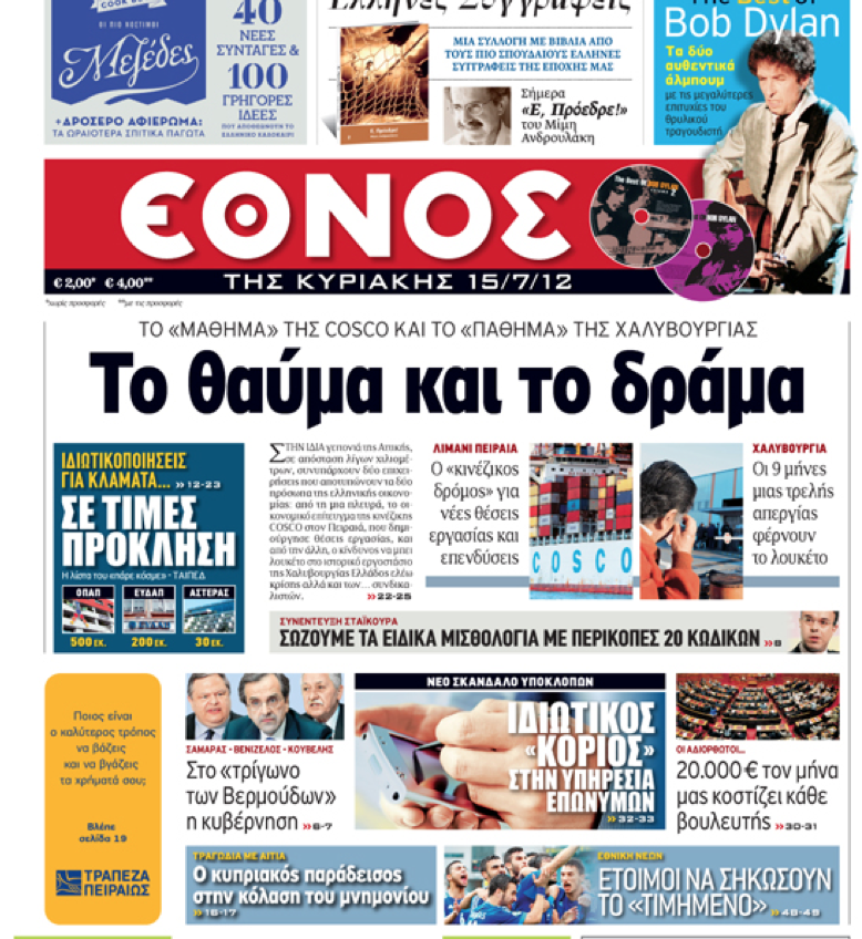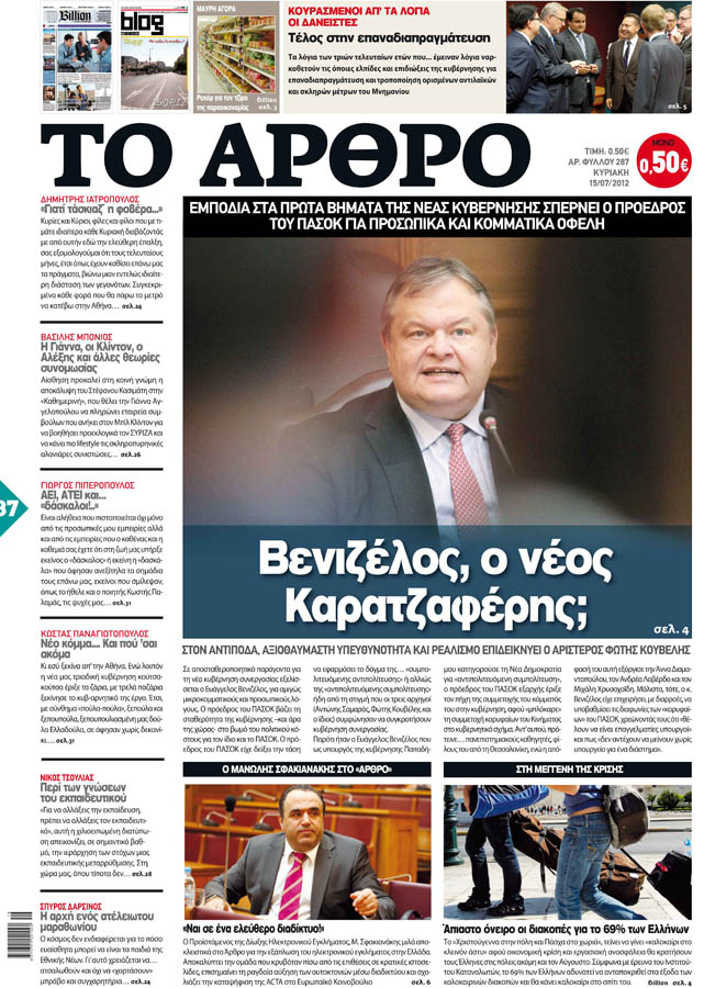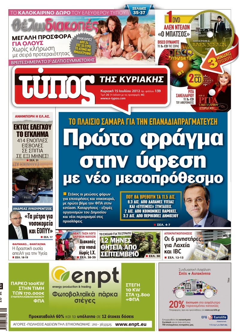 Κυριακάτικα Πρωτοσέλιδα 15-7-2012