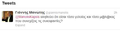 Σκληρό σχόλιο κατά του Μανώλη Καψή, έκανε ο Γ. Μανώλης μέσω Twitter.
