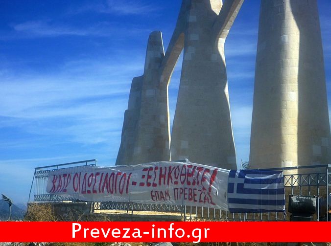 Σύμφωνα με το ΕΠΑΜ ''Η ενέργεια ανάρτησης πανό στο μνημείο του Ζαλόγγου, έγινε με την ευκαιρία του εορτασμού των 100 ετών από την απελευθέρωση της Πρέβεζας, σε άμεση σχέση με την σημερινή κατάσταση δουλείας που έχει περιέλθει ο Ελληνικός λαός εξαιτίας των δωσιλογικών κυβερνήσεων που διαδέχονται η μία την άλλη!