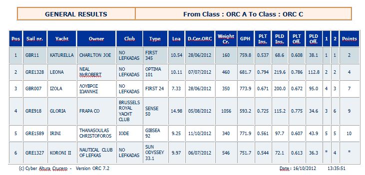 Τα τελικά αποτελέσματα από το σύνολο των δύο ιστιοδρομιών είναι τα παρακάτω: