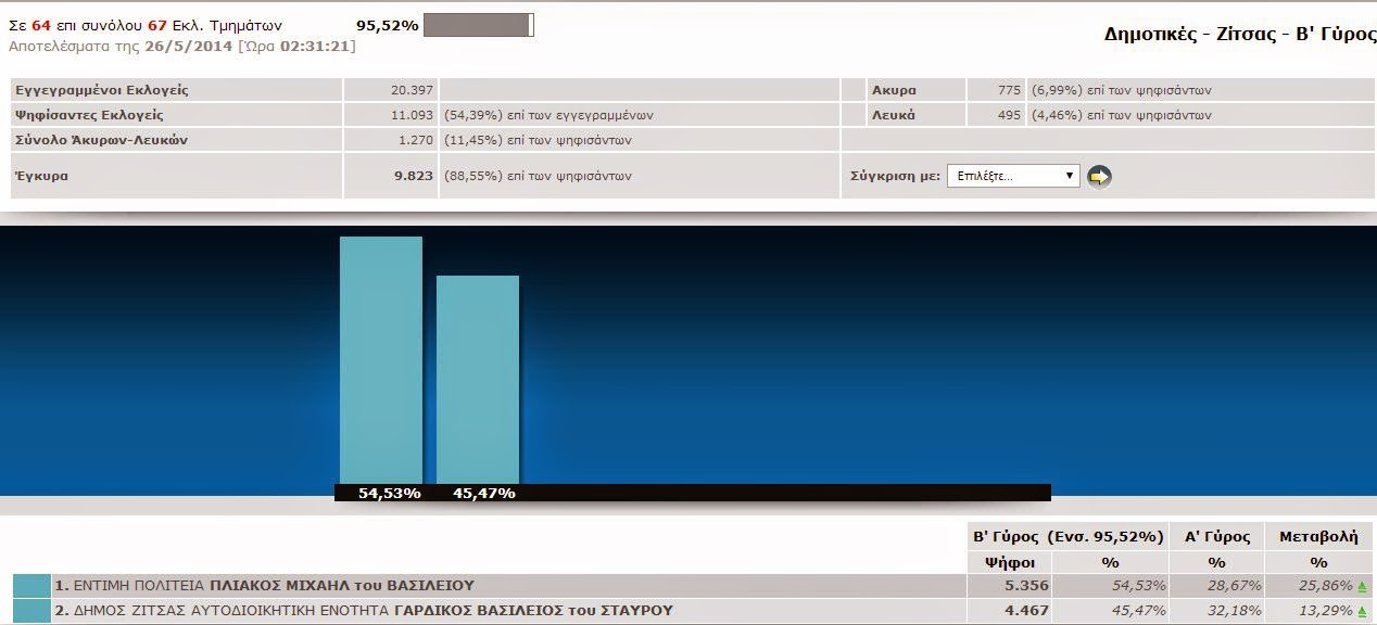 Τα αποτελέσματα στου δήμους της ΠΕ Ιωαννίνων