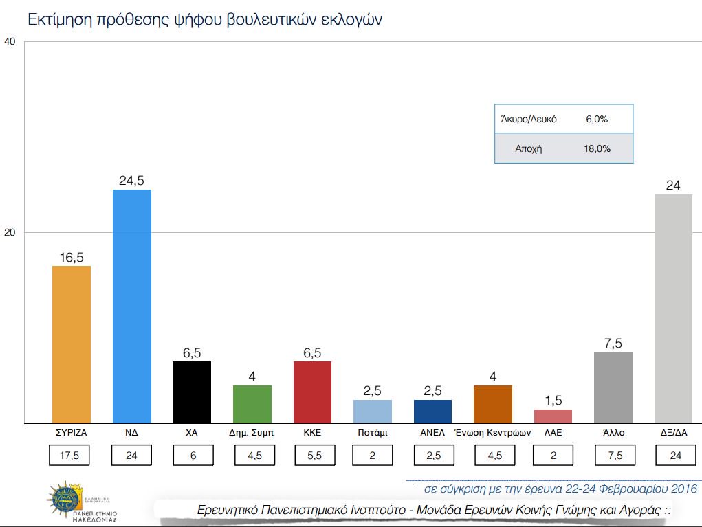 2,8 μονάδων η διαφορά σε νέα δημοσκόπηση