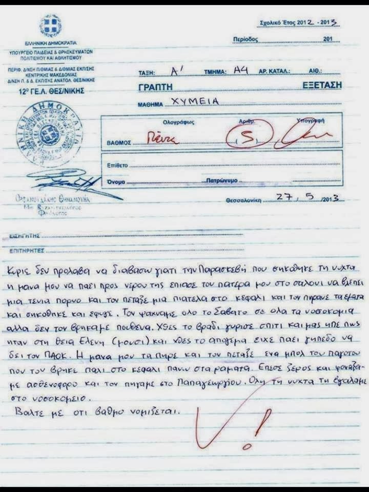 Δείτε τι δικαιολογία έγραψε πάνω στο διαγώνισμα ο αδιάβαστος μαθητής