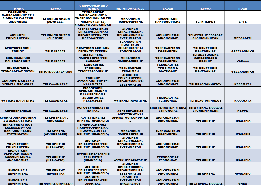 Οι 94 σχολές που κλείνουν σύμφωνα με το σχέδιο ΑΘΗΝΑ