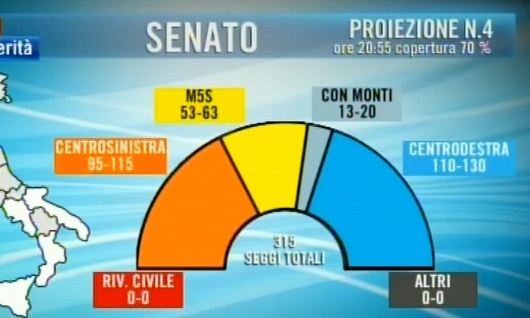 Οι Ιταλοί έστειλαν το μηνυμα στους Γερμανους υπεψηφίζοντας τον Berlusconi, ο οποίος φαίνεται να κερδίζει τις εκλογές.