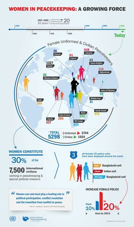 Με τον τίτλο ''Women in peacekepping : A growing force'' τα Ηνωμένα Έθνη παρουσιάζουν την αύξηση των γυναικών σε ειρηνευτικές αποστολές σε όλο τον κόσμο.