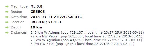 Σεισμός 3.8 R δυτικά του Αγρινίου