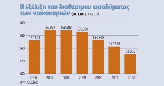 Τα εισοδήματα μειώθηκαν σωρευτικά κατά περίπου 30% από το 2010 και μετά, περιορίζονταν δραματικά την εγχώρια ζήτηση και κατανάλωση.
