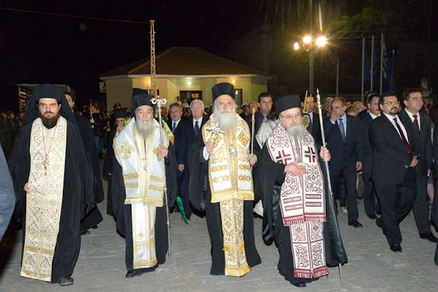 Το απόγευμα τελέσθηκε ο αρχιερατικός Εσπερινός, στον Ιερό Ναό Αγίου Σπυρίδωνος, χοροστατούντος του Μητροπολίτου Γόρτυνος και Μεγαλοπόλεως και συγχοροστατούντων των Μητροπολιτών Βεροίας, Ναούσης και Καμπανίας και Αιτωλίας και Ακαρνανίας.