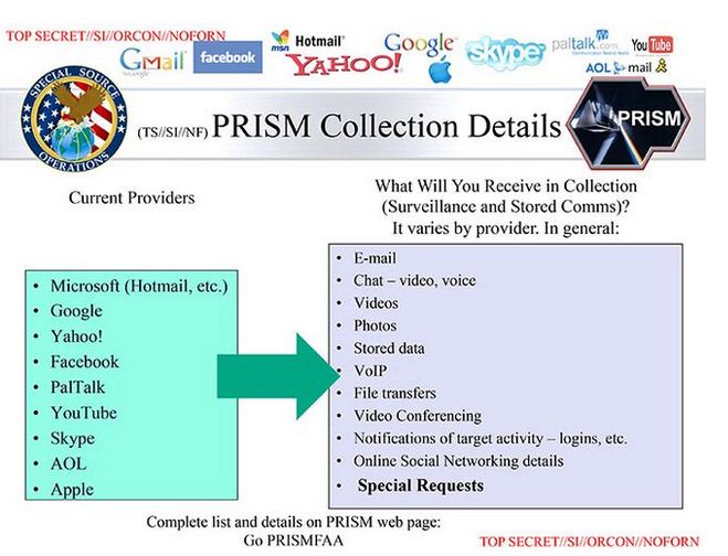 Σύμφωνα με το πρακτορείο Reuters, η Post και η Guardian δημοσίευσαν την Πέμπτη άρθρα υποστηρίζοντας ότι η αμερικανική Εθνική Υπηρεσία Ασφάλειας (NSA) και το FBI "έχουν άμεση πρόσβαση στους κεντρικούς διακομιστές 9 κορυφαίων εταιρειών του Διαδικτύου", μέσω ενός άκρως απόρρητου προγράμματος, με την ονομασία PRISM. Σύμφωνα με το δημοσίευμα, οι υπηρεσίες κάνουν "εξαγωγή" ηχητικών δεδομένων, βίντεο, φωτογραφιών, μηνυμάτων ηλεκτρονικού ταχυδρομείου, εγγράφων και αρχείων σύνδεσης.