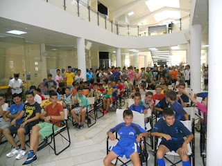 Σήμερα στις 7 το απόγευμα στη λαική αγορά βρέθηκε ο Μίμης Παπαιωάννου, πλαισιωμένος από τοπικούς αθλητικούς παράγοντες όπου δεκάδες των παιδιών όπου λαμβάνουν μέρος στο τουρνουά βρέθηκαν για να παρακολουθήσουν τα όσα σημαντικά έχει να τους διδάξει {Διατροφή,Πρώτες βοήθειες ,Αθλητισμός &Σχολική Επίδοση}